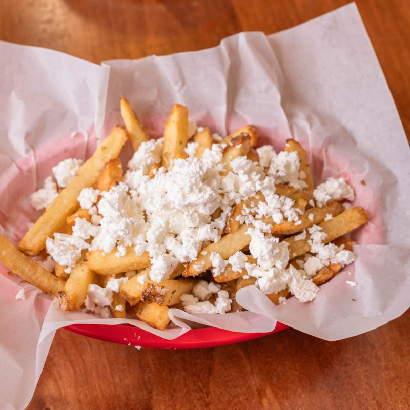 Hand cut Kennebec potatoes fried in natural canola oil. Lightly seasoned with Greek herbs and feta.